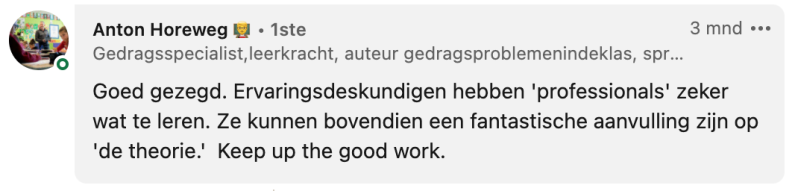 Je ervaring helpt anderen enorm en ik lees het met liefde terug.