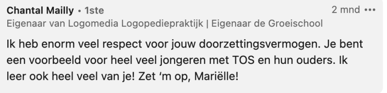 Ga zo door Mariëlle! Je doet het fantastisch.
